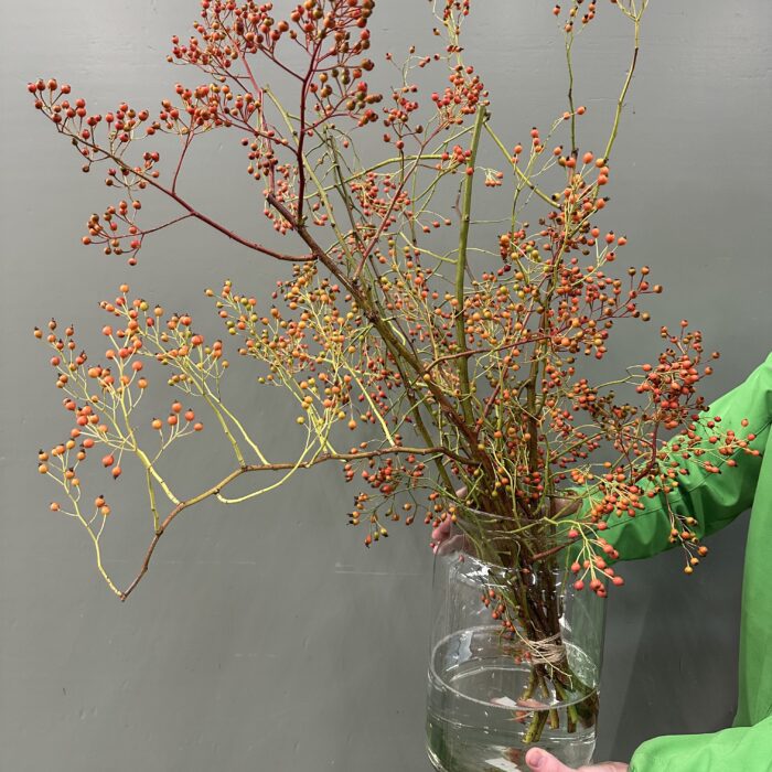 Een exclusieve rozenbottel uit ons assortiment is de Corallo. Deze rozenbottel takken zijn kenmerkend aan de kortere, grillige takken waaraan grotere rozenbottels zitten. Deze rozenbottels zijn geschikt om op een vaas te zetten of te verwerken in mooie stukken en hebben een lengte van ongeveer 100cm.