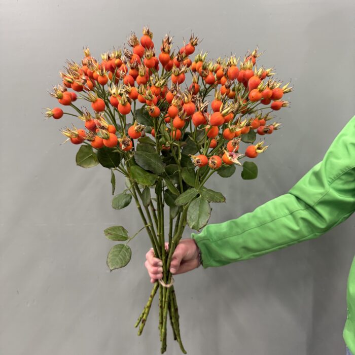 Een exclusieve rozenbottel uit ons assortiment is de Pumpkin van Hollandse bodem! Deze rozenbottel takken zijn kenmerkend aan de dikke rozenbottels die bovenin de takken aanwezig zijn met een leuk speels kroontje. Ze hebben wat weg van kleine pompoentjes.